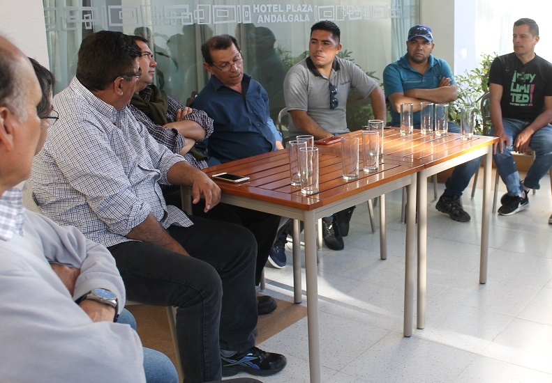 El grupo de desempleados andalgalenses, junto con los operarios que quedaron desocupados de Bajo La Alumbrera, encabezados por Julio Contreras, departieron con los sindicalistas en el hotel donde éstos se alojaron en su paso por la “Perla del Oeste”.