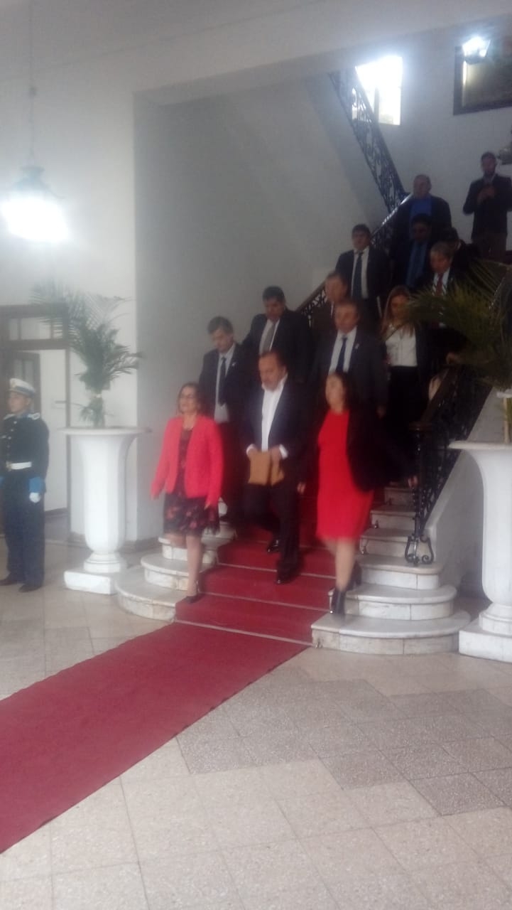 Como es protocolar, los legisladores asignados en la asamblea se dirigen a buscar a la gobernadora Lucía Corpacci a Casa de Gobierno, para luego dirigirse al Cine Teatro y brindar su discurso.