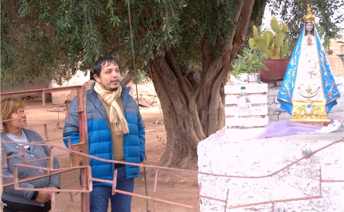 Seguido a ello, pasó a visitar el barrio centro a una gruta de la Virgen del Valle, en la que un grupo de vecinas solicitan la ayuda para reacondicionarla. Inmediatamente después, se hizo presente en el predio del Ex Matadero municipal, donde la Delegación construirá su edificio propio.