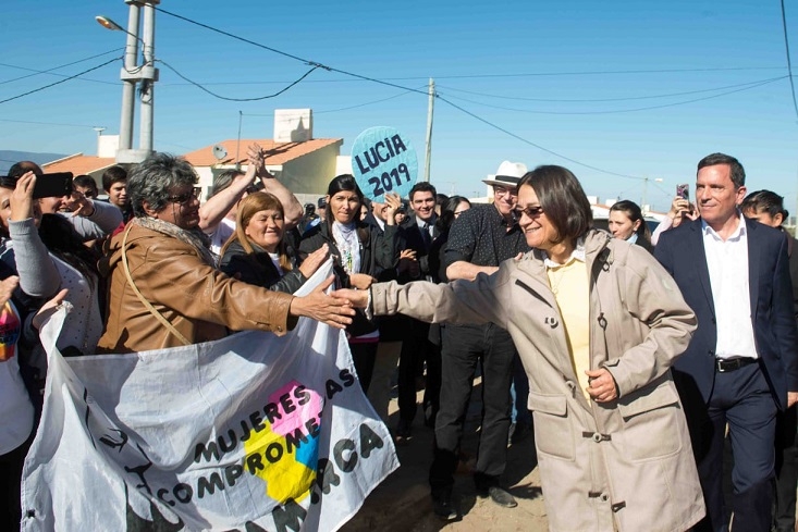 La mandataria fue recibida por el titular de la Secretaría de la Vivienda, Fidel Sáenz, y estuvo acompañada por el ministro de Producción, Daniel Zelarayán; la Presidenta del SADE, Hilda García; la diputada nacional, Verónica Mercado; legisladores provinciales y funcionarios del Poder Ejecutivo.