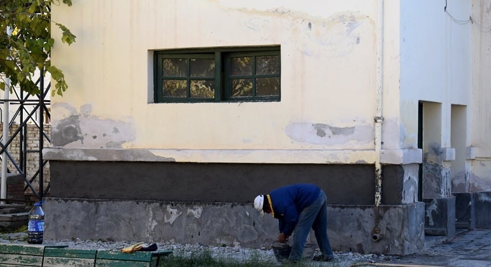 En el Instituto de Estudios Superiores, se realizan trabajos de refacción, en este caso, en la fachada del patio interno y sector de baños con revoque, grueso y fino. Además en el patio externo se realizó caminerías con contrapiso alisado para circulación. Luego, se continuará con arreglos de techos por filtraciones, revoque y pintura en las aulas.
