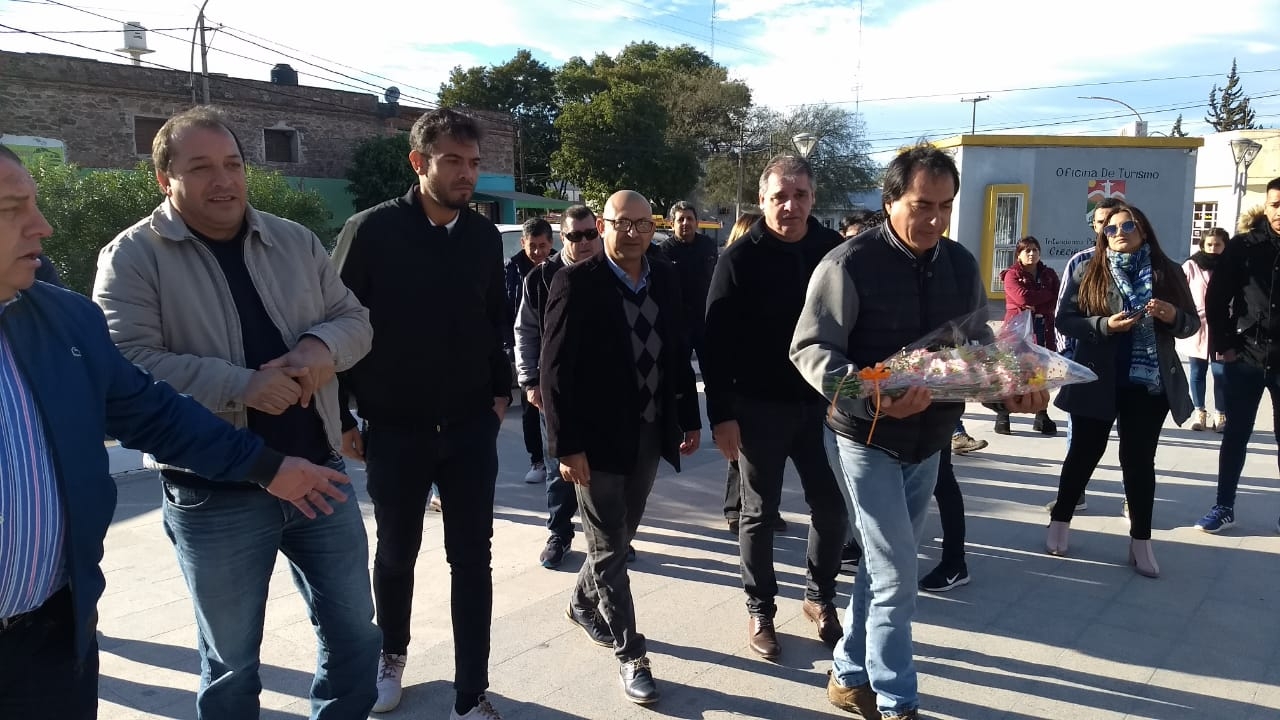 Después, estuvieron en la ofrenda floral en el Busto de Juan Domingo Perón en Plaza 25 de Mayo, de la ciudad de Recreo.