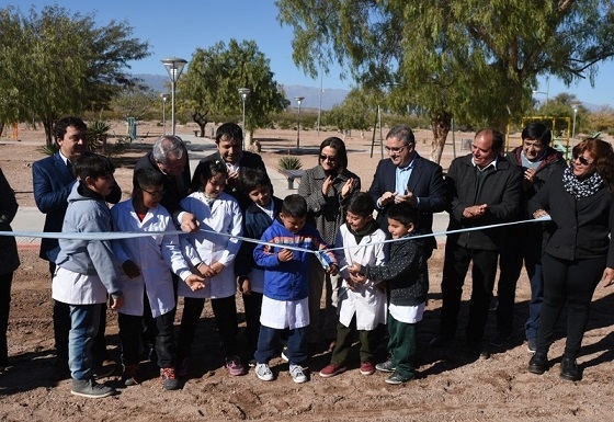 En su recorrido por el departamento del Oeste provincial, Lucía inauguró en primer término un nuevo espacio público ubicado frente a la Iglesia de la Medalla Milagrosa, en El Pueblito.