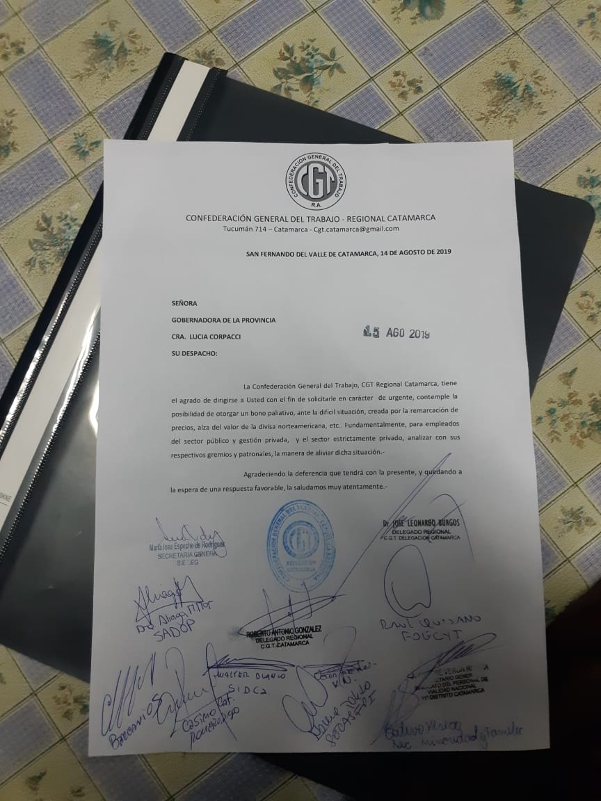 La Confederación General del Trabajo envió una nota dirigida a la gobernadora Lucía Corpacci para que de “manera urgente” evalúe la posibilidad de otorgar un bono paliativo a los empleados públicos.
