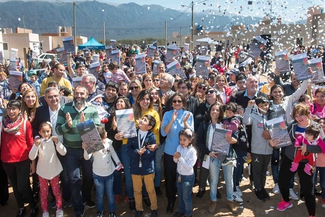La Gobernadora Lucía Corpacci encabezó hoy un nuevo acto de entrega de viviendas a familias catamarqueñas que se suman a los habitantes del complejo urbanístico Valle Chico. Se trata de 70 nuevos hogares de las 880 casas adjudicadas del Programa "Techo Digno". Hasta el momento 1.850 familias habitan en el complejo habitacional.