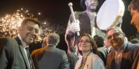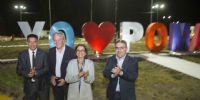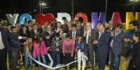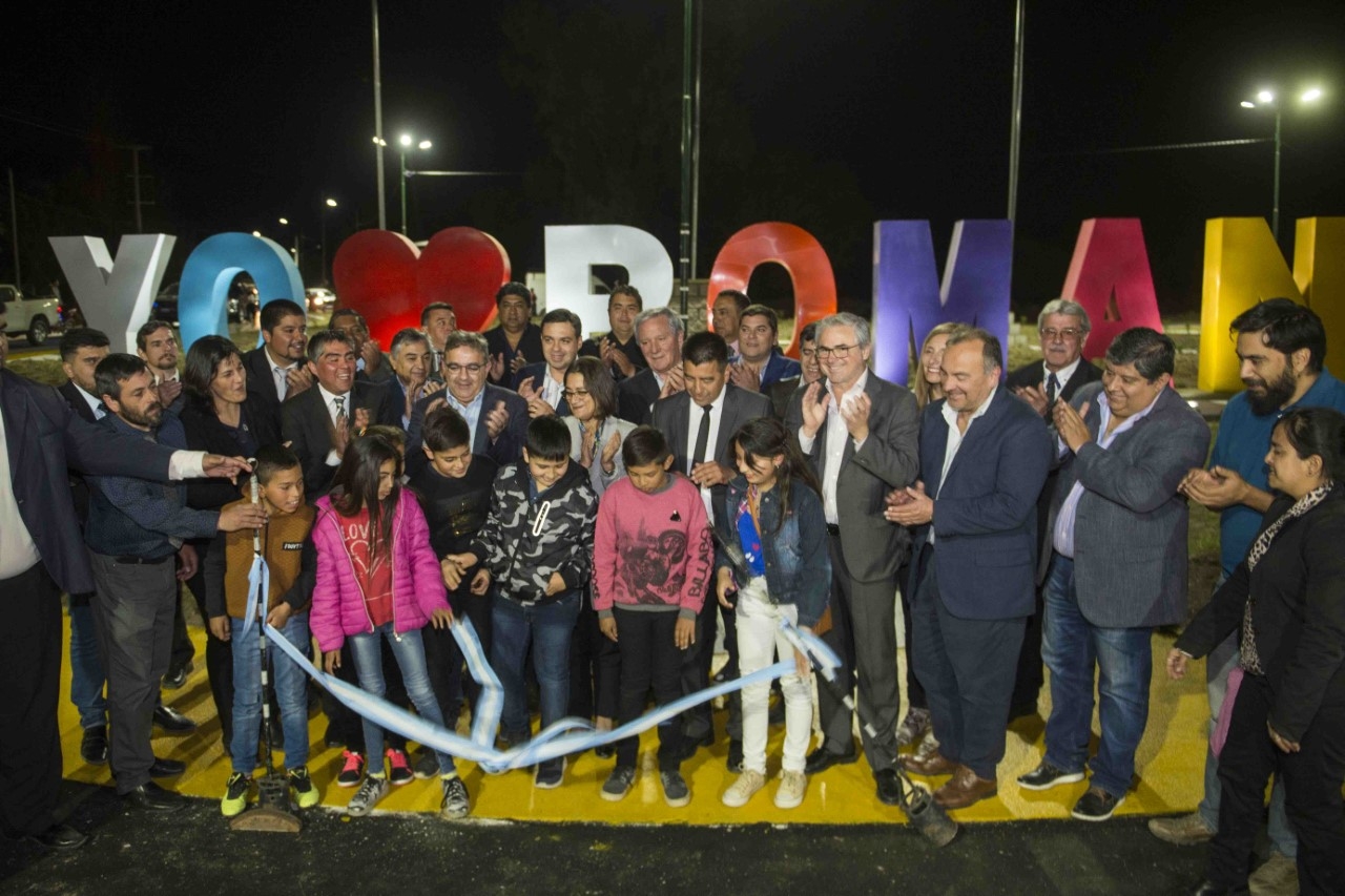 Uno de los momentos más emotivos de la noche fue la inauguración de la nueva avenida de Acceso a la Villa de Pomán consistente en mejoramiento de entrada con pórticos y letras corpóreas, recambio de la línea de media tensión y colocación de transformadores trabajos llevados adelante por la Empresa de Energía Sapem.