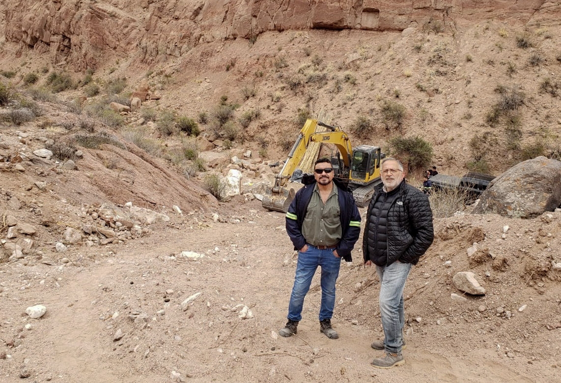 El senador por el departamento Belén y presidente provisorio de la Cámara Alta, Jorge Solá Jais; el jefe de la delegación Belén de Vialidad Provincial Gaspar Bulacios; y el candidato a intendente por el “Frente de Todos” de Belén, visitaron la obra de construcción del camino a El Tolar, recientemente puesta en marcha por el Ejecutivo Provincial.