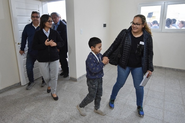 La Gobernadora Lucía Corpacci encabezó hoy un acto de entrega de viviendas a 60 familias catamarqueñas que se suman al complejo urbanístico Valle Chico. Se trata de la octava etapa en la cual se entregaron 60 nuevos hogares de las 880 adjudicadas del Programa "Techo Digno". Hasta el momento 1910 familias habitan en el complejo habitacional.