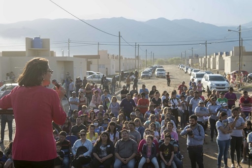 Finalmente, aún con el intenso viento, se procedió a la entrega de las llaves a las 40 familias que contarán con su hogar y se realizó el corte de cintas.