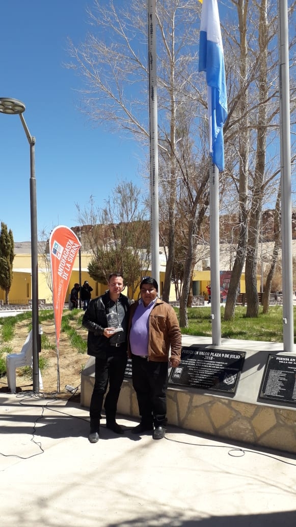 Gutierrez, junto a su madre María Angelica Sachetti, donó recientemente, al municipio de Antofagasta de la Sierra, un colectivo de última generación que será destinado para el transporte de alumnos de esa comunidad.