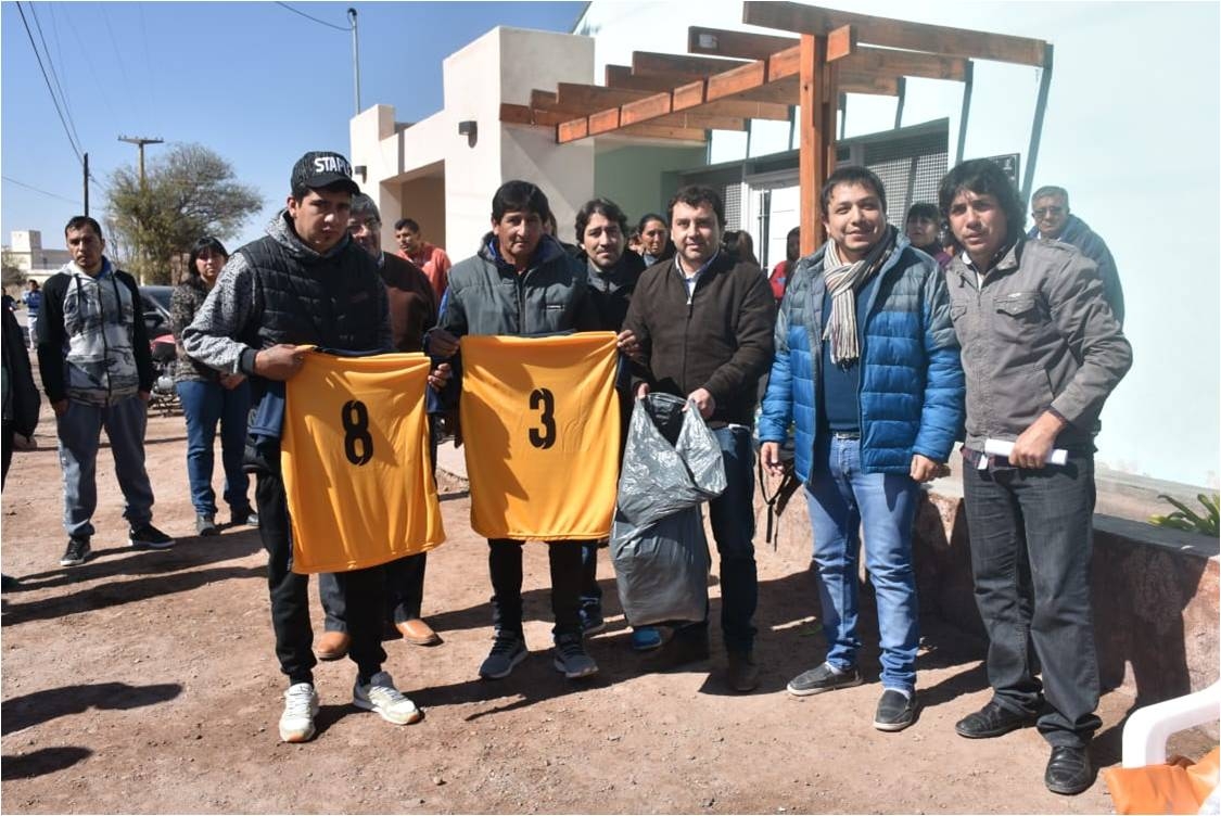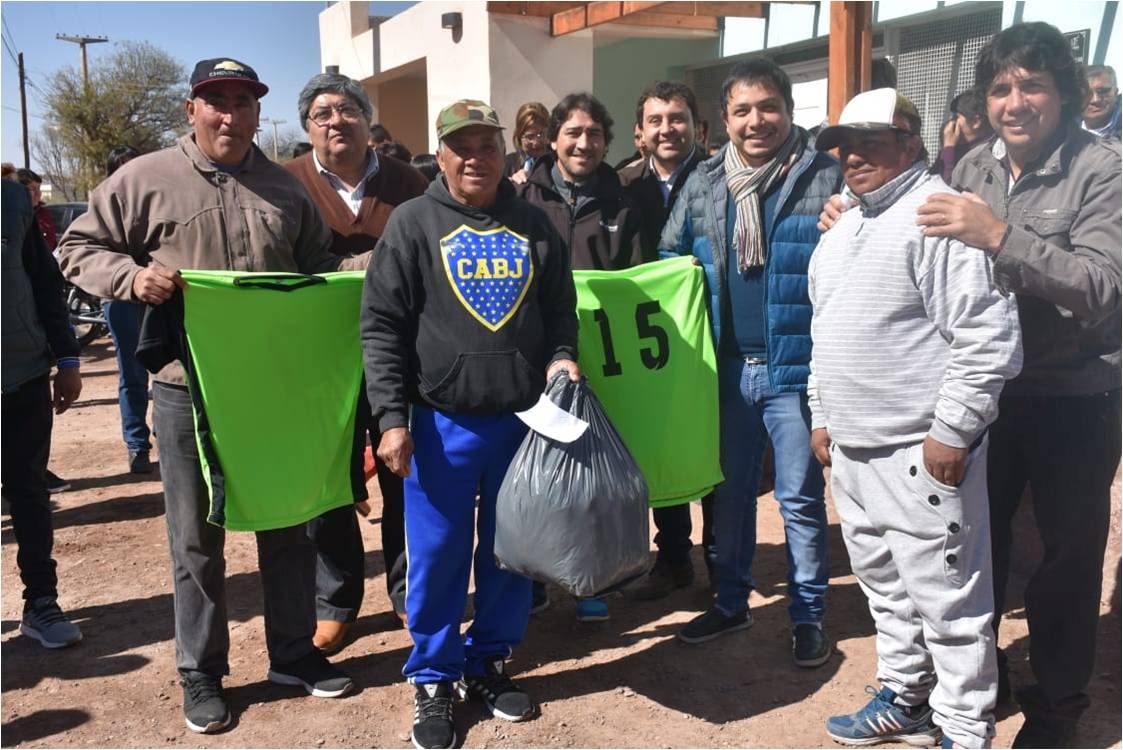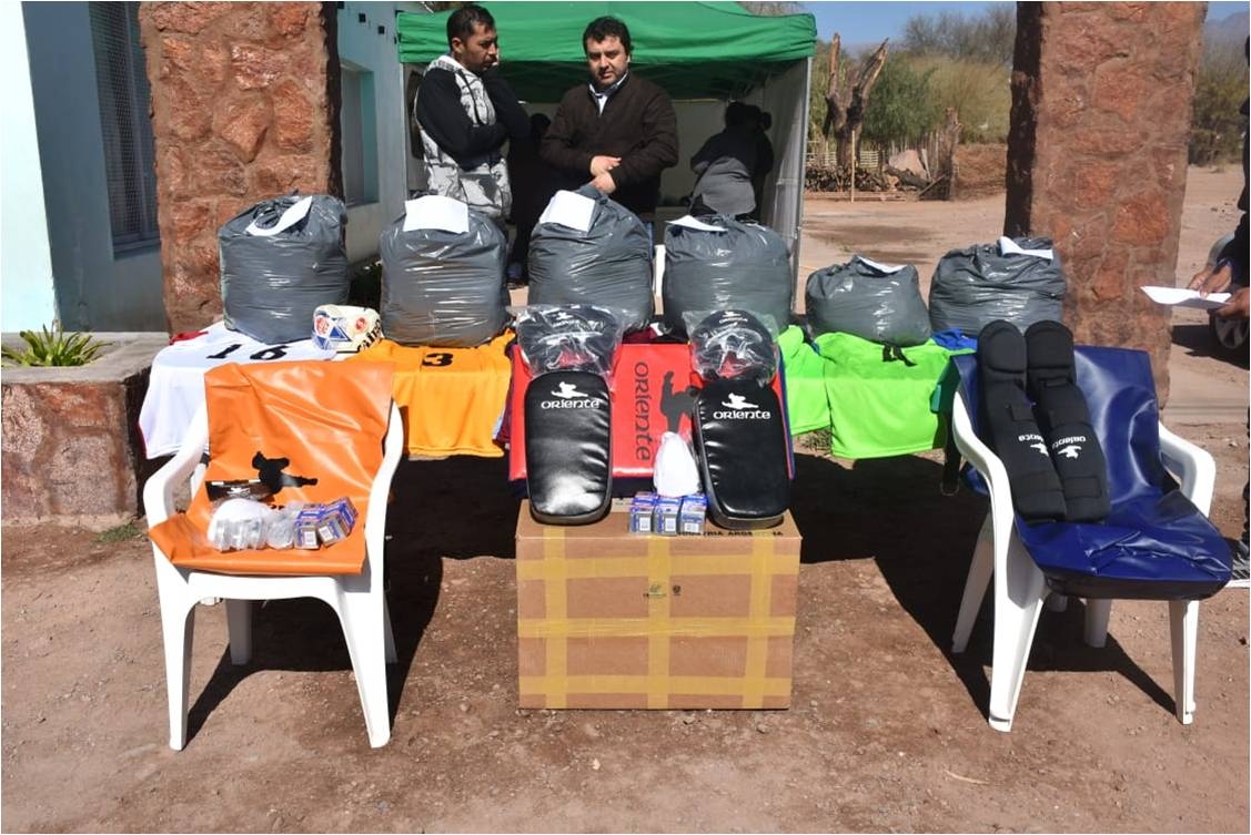 Por otra parte, el Intendente junto al Director de Deportes, Ricardo Tello, el Coordinador Oscar Bordón, el Delegado Municipal Sergio Yapura y el presidente del Concejo Deliberante, Julio Áyame, aprovechó la ocasión para cumplir con diversos pedidos de indumentaria y elementos deportivos para los Clubes de la Liga de Veteranos, Santa Rosa, de Pre Veteranos de San José y Clubes barriales de Villa San Roque, Anillaco, B° Obreros y equipo de fútbol de la Comisaría Departamental.
