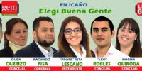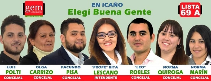 Los Candidatos a Concejales de Icaño, surgidos de las PASO en la Lista del GEM “que nos bajamos por RENUNCIA, somos: 1° Concejal Titular Leandro Jorge Robles; 2° Concejal Titular Norma Brenda Quiroga; 3° Concejal Titular Facundo Eliseo Pisa; 3° Concejal Suplente Norma Alejandra Marín”.