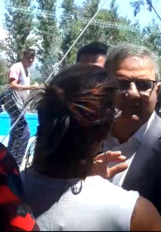 La incomoda situación del mandatario fue expuesta también en las redes sociales. "SEÑOR LE SUPLICO Q NO DEJE A FUERA TANTA GENTE !!! ES GENTE POBRE MUY POBRE CON NIÑOS CON DISTINTAS DISCAPACIDADES .POR FAVOR!!! TENGA PIEDAD YA Q NUESTRA INTENDETE TIENE EL CORAZÓN DE PIEDRA!!!", indicò en su perfil Gabriela Espeche junto a una foto del gobernador dialogando con los manifestantes.