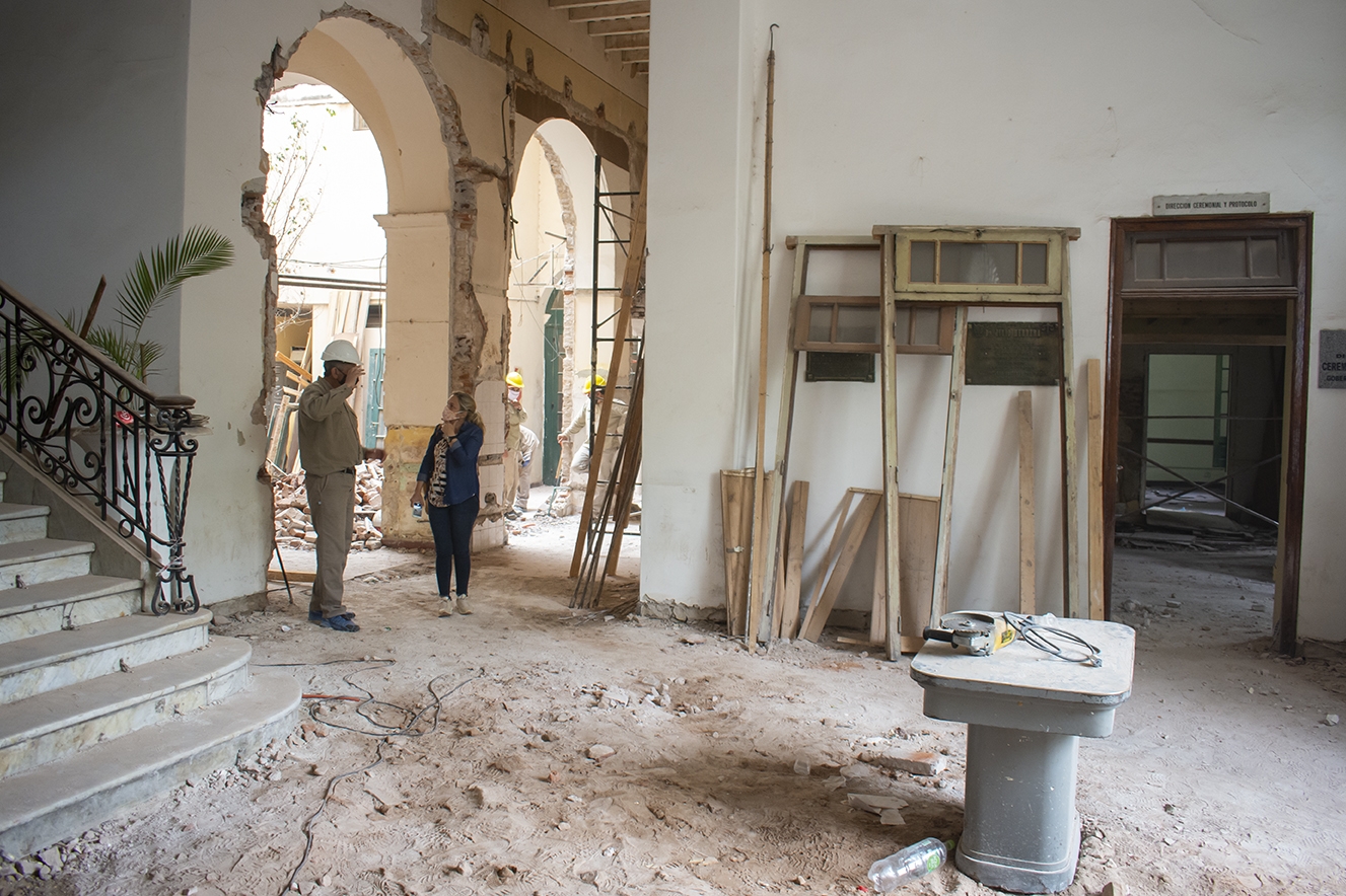 La titular de dicha Dirección, Laura Maubecín, indicó que visitan regularmente la obra, acompañando y asesorando a la cartera de Infraestructura y Obras Civiles, al tiempo que realizan un registro de todo lo que se está descubriendo, lo que permitirá documentar esta puesta en valor de la histórica Casa de Gobierno.