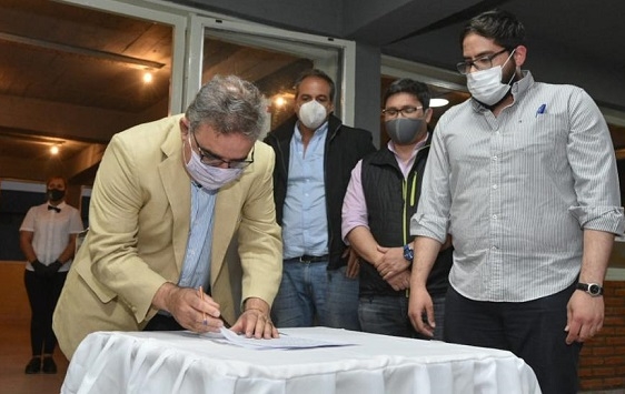 “Se financiará la construcción del Frigorífico Avícola de pollo fresco donde tendrán la faena y toda la línea de producción para el departamento”, expresó Emilio Ramaci, secretario de Desarrollo Productivo, respecto al documento firmado.