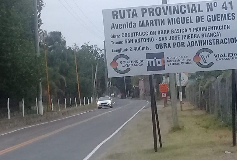 Allí, alrededor de las 10 de mañana, estará llegando el gobernador de la provincia, Lic. Raúl Jalil, para inaugurar la construcción de la obra básica y pavimentación del tramo de 2.400 metros, de la Ruta Provincial Nro. 41 (también identificada como Av. Martín Miguel de Güemes), entre San Antonio y San José de Piedra Blanca, que se ejecutó “por administración”, con el concurso directo de personal, materiales y equipamiento de Vialidad Provincial.