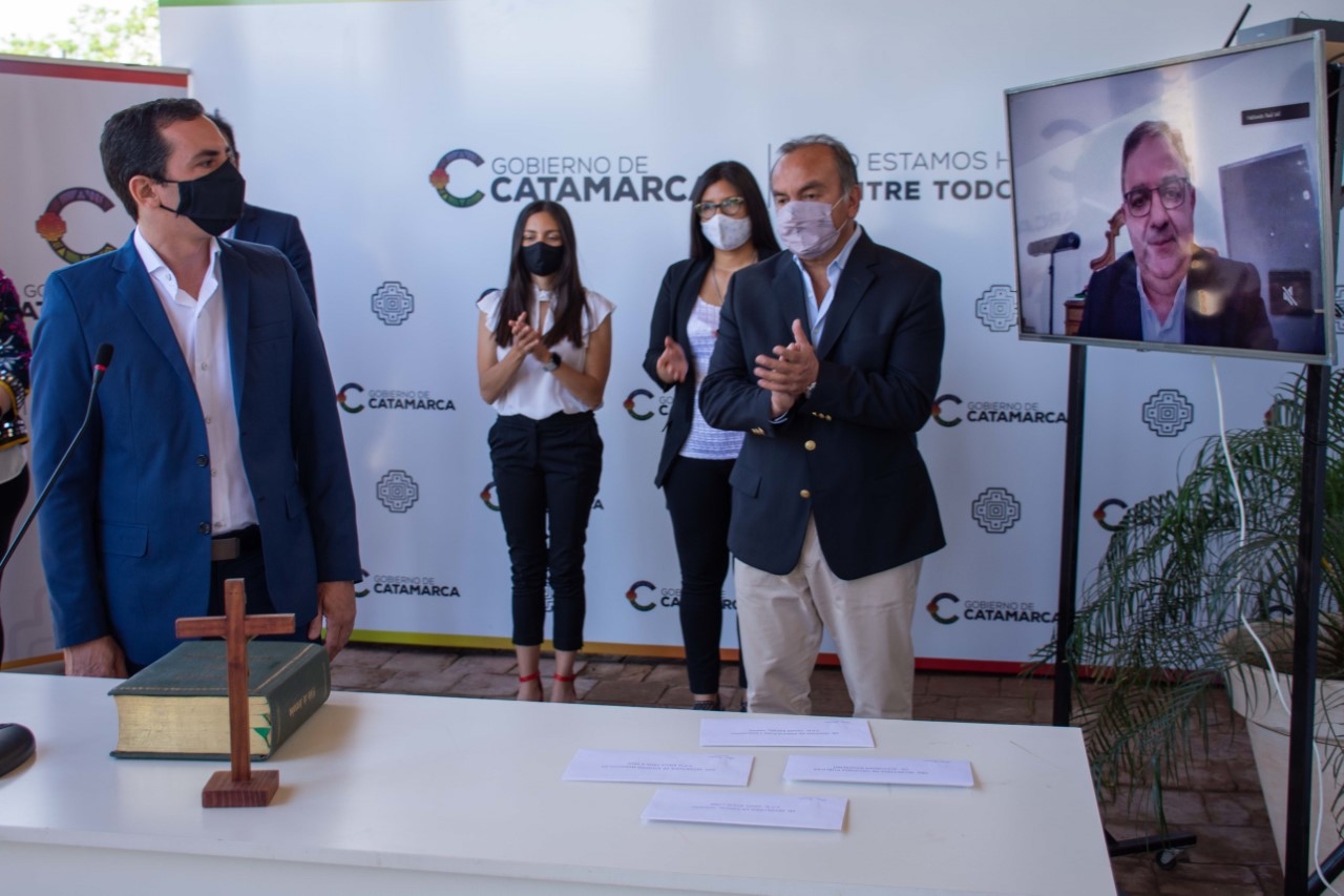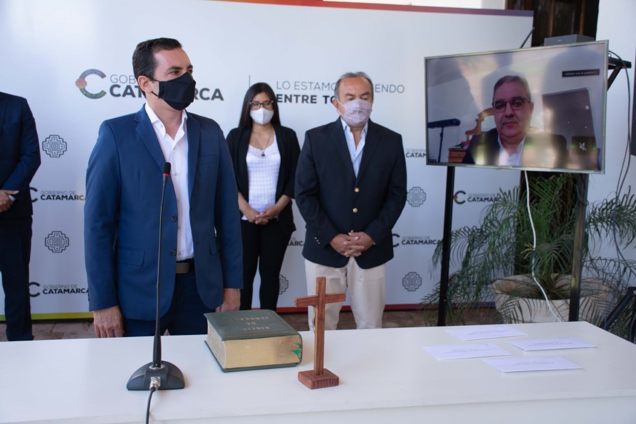 El gobernador Raúl Jalil, de manera virtual, tomó juramento como ministro de Agricultura y Ganadería, al contador César Rafael Tobías.