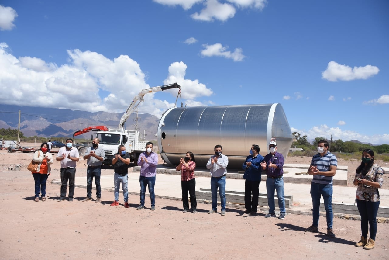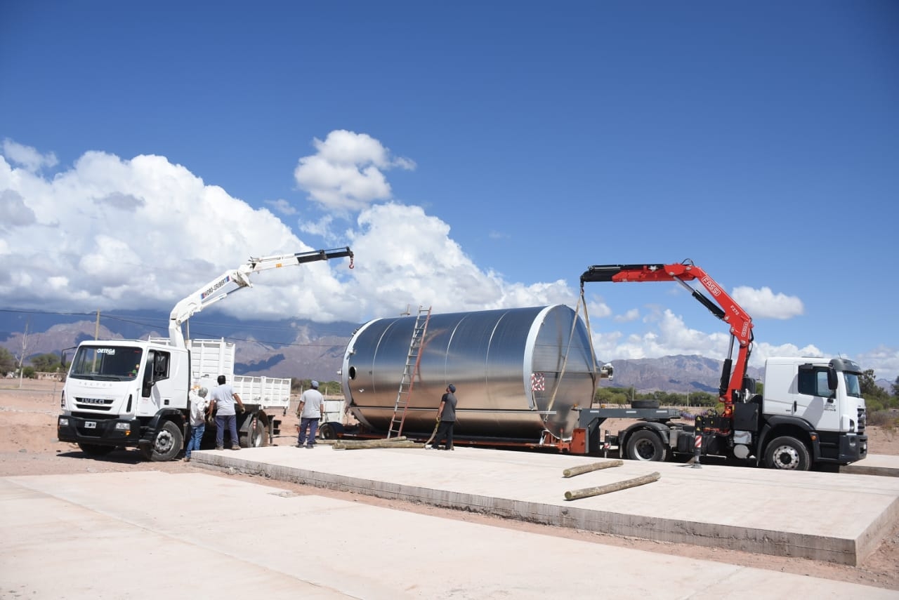 “La mostera está ubicada frente al aeródromo pasando el polideportivo, se está avanzando muy bien con las obras, lo que faltaba era precisamente que lleguen estos tanques que tienen una capacidad, esperemos que en la próxima vendimia que será en febrero esta obra esté inaugurada y ya en funcionamiento, lo más importante es que ya empezaron a llegar los elementos, los equipamientos para la planta concentradora de mosto, así que estamos muy contentos de poder avanzar con este proyecto tan importante para toda la comunidad", expresó el intendente Nóblega.