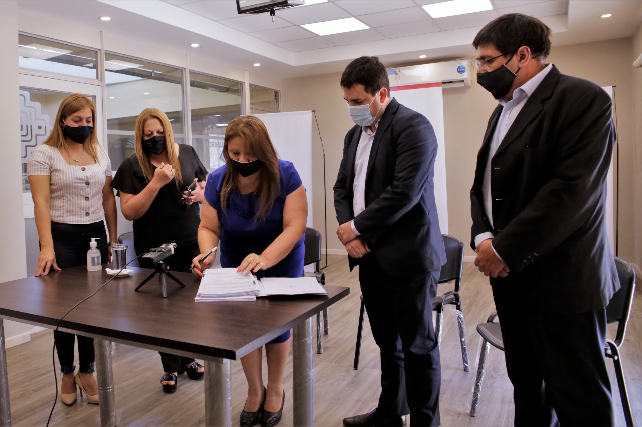 De manera presencial lo hicieron los directores de la Caja de Créditos, su presidente Rafael Ponzo y los directores Stella Nieva y Daniel Zelarayán y los referentes de APUNCa, Gladys Moro (secretaria General), Miguel Morales (secretario Gremial) y Edgardo Molina (secretario Adjunto).