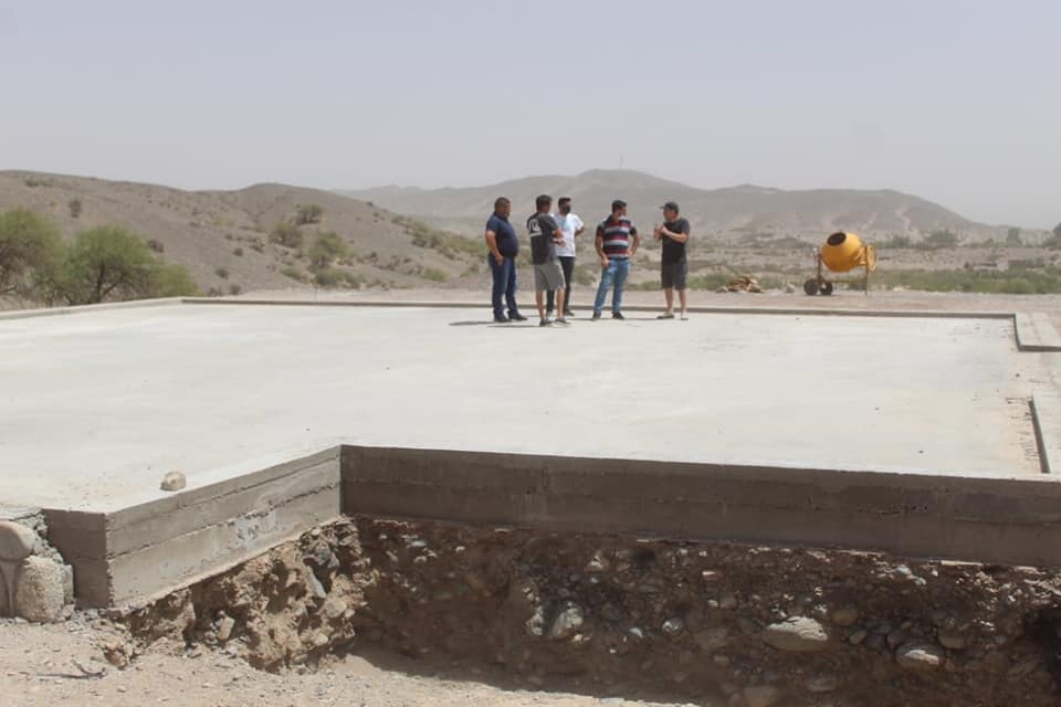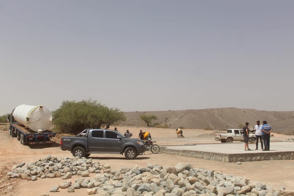 El secretario de Obras Públicas del municipio de Fiambalá, Daniel Sáenz, junto a técnicos especializados en construcción de la mostera que se trasladaron desde Mendoza, supervisaron e hicieron los trazados donde se ubicarán los tanques, el lagar y demás elementos básicos de la obra.