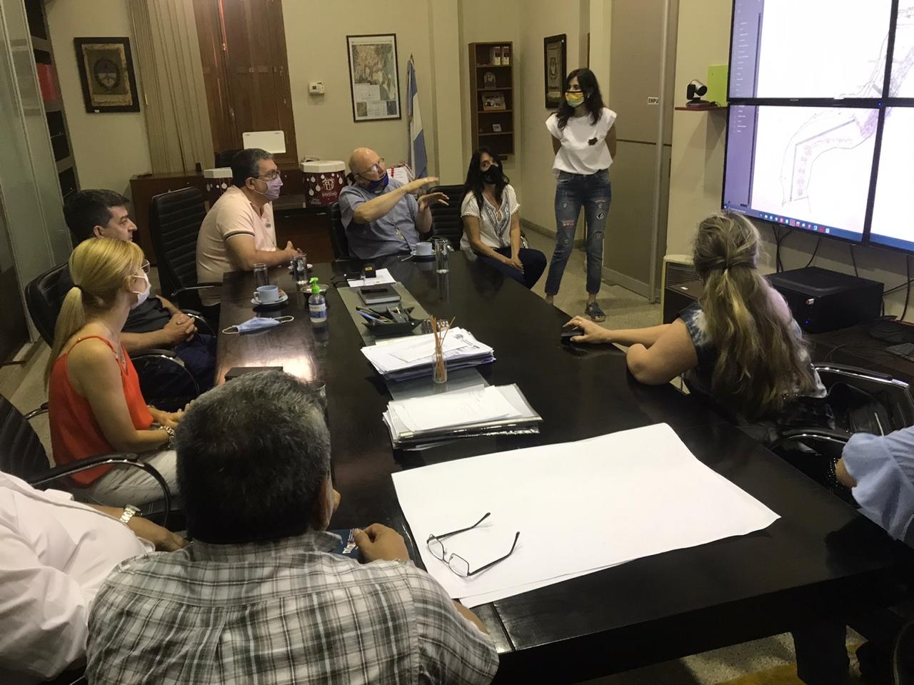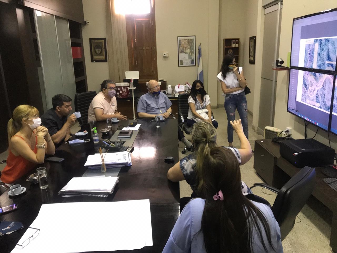 Luego, las arquitectas Cristina Di Benedetto y Silvana Pomiglio, también pertenecientes a la Dirección de Proyectos del ministerio, y quienes están a cargo de la refacción histórica de Casa de Gobierno con el fin de devolverle su originalidad, explicaron al Obispo los trabajos que se vienen llevando a cabo y cómo se planea unir la Catedral Basílica con Casa de Gobierno, logrando de esta manera devolverle a la Catedral su patio norte.