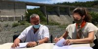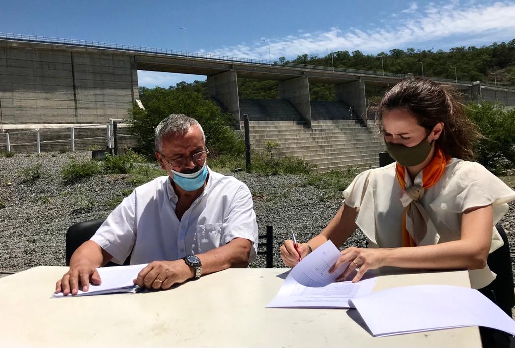 El ingeniero Jorge Raúl Argañaraz, en representación de la Secretaría de Infraestructura y Política Hídrica dependiente del Ministerio de Obras Públicas de la Nación y la ingeniera Florencia Zarauz rubricaron el acta de entrega a la provincia de Catamarca del Embalse para la operación, mantenimiento, custodia y la realización de obras complementarias.
