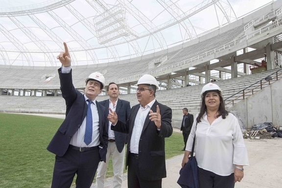 Antes de la firma del convenio, el gobernador Gerardo Zamora encabezó una recorrida de obra en el nuevo estadio provincial de Santiago del Estero que se encuentra en su etapa final de construcción.