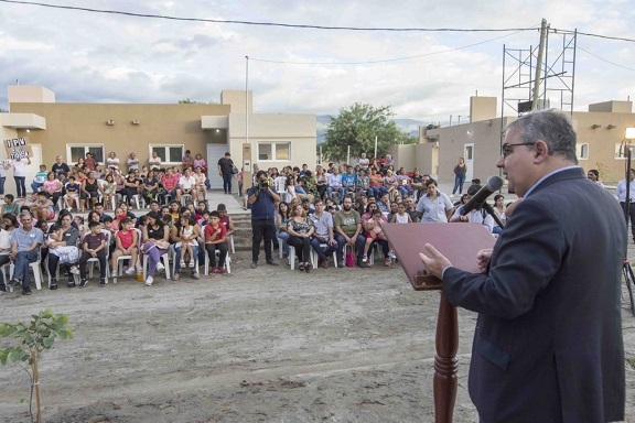 En el acto inaugural, Jalil enfatizó el esfuerzo realizados por los organismos provinciales para terminar la obra completa del barrio ya que las mismas se iniciaron cuando se dejaron de percibir fondos nacionales para políticas habitacionales.
