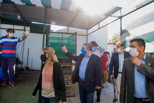La recorrida oficial incluyó una visita a las plantas productoras de aceite de oliva y aceitunas de la ciudad de Pomán, donde se mantiene la producción bajo estrictas medidas sanitarias.