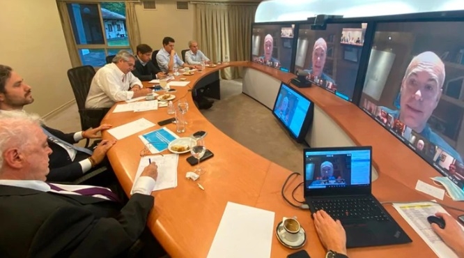 Acompañado por el jefe de Gabinete, Santiago Cafiero; Julio Vitobello, secretario General de la Presidencia; los ministros Ginés González García y Eduardo “Wado” de Pedro, y el gobernador bonaerense, Axel Kicillof, en el salón contiguo al quincho de Olivos que desde hace casi un mes funciona como la sala para las reuniones virtuales, Fernández se mostró seguro de la decisión de extensión del aislamiento, que ayer por la tarde había terminado de consensuar con la ratificación del comité de especialistas convocados a Olivos.