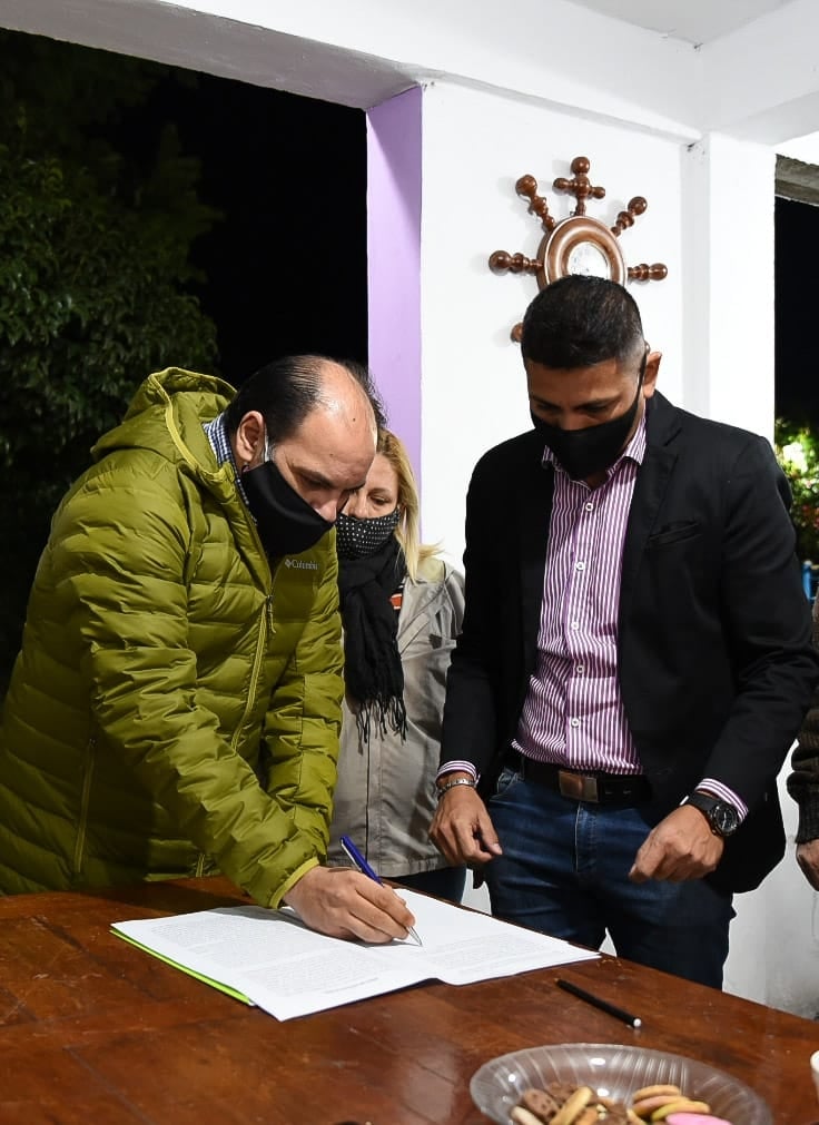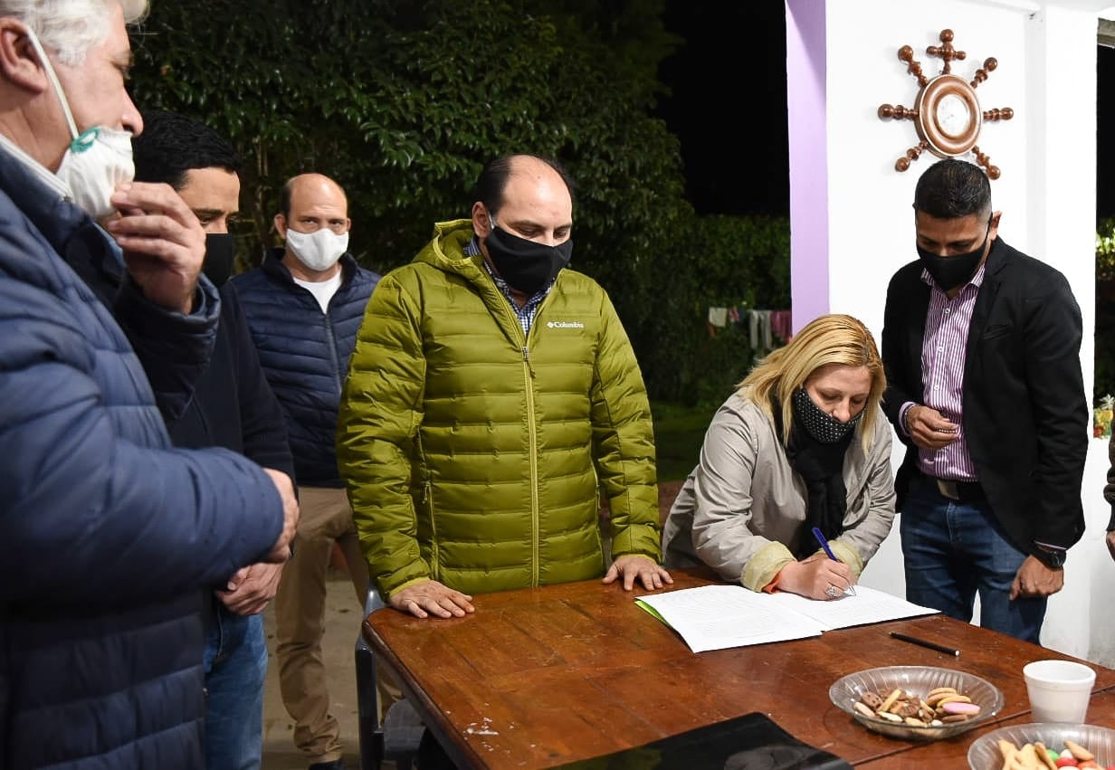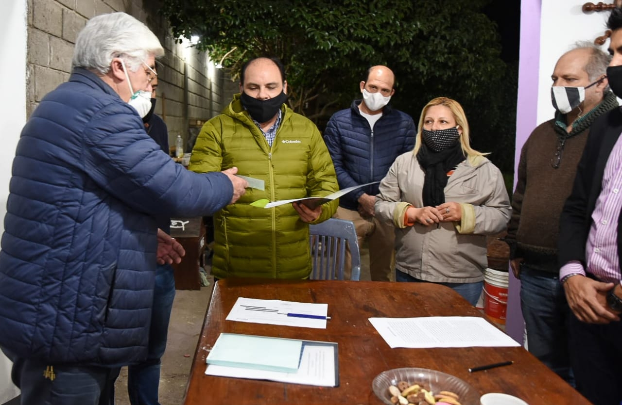 Del acto participaron junto al jefe comunal, el presidente de la Caja de Crédito, Juan Zelarayán, los directores de la entidad, Juan Espilocin y Mario Sosa, el presidente del Concejo Deliberante, Daniel Zelaya, vecinos del barrio e integrantes de la empresa contratada.