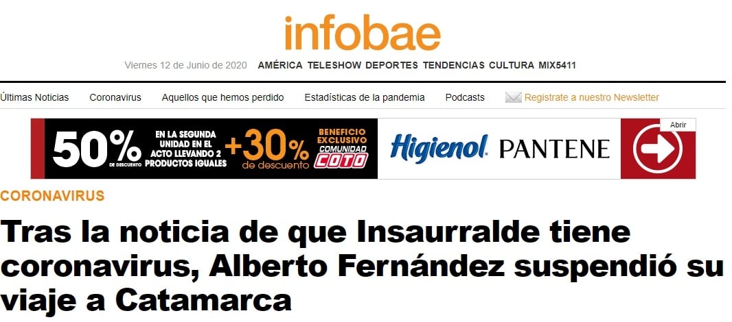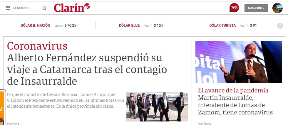 La pandemia por el Covid19 cambia hora a hora y todo se reformula a cada momento. Tan es así que la cancelación del viaje del Presidente de la Nación, Alberto Fernández a Catamarca a causa del contagio del intendente Martín Insaurralde, llegó a la prensa nacional.