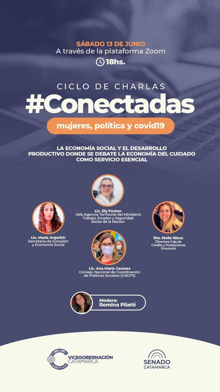 Con la directora de Promoción Social del Senado, Romina Pilatti, como moderadora, esta edición del ciclo que busca contribuir a la construcción de un entramado de mujeres funcionarias, legisladoras, referentes sociales, culturales e intendentas, tendrá como protagonistas a; la Lic. María Argerich, Secretaria de inclusión y economía social; a la Dra. Stella Nieva, Directora Caja de Prestamos CaPrescA; a la Lic. Ely Fotao, Jefa Agencia Territorial Ministerio Trabajo, Empleo y Seguridad Social de la Nación; y a la Lic. Ana María Cáceres, del Concejo Nacional de Coordinación de Políticas Sociales.