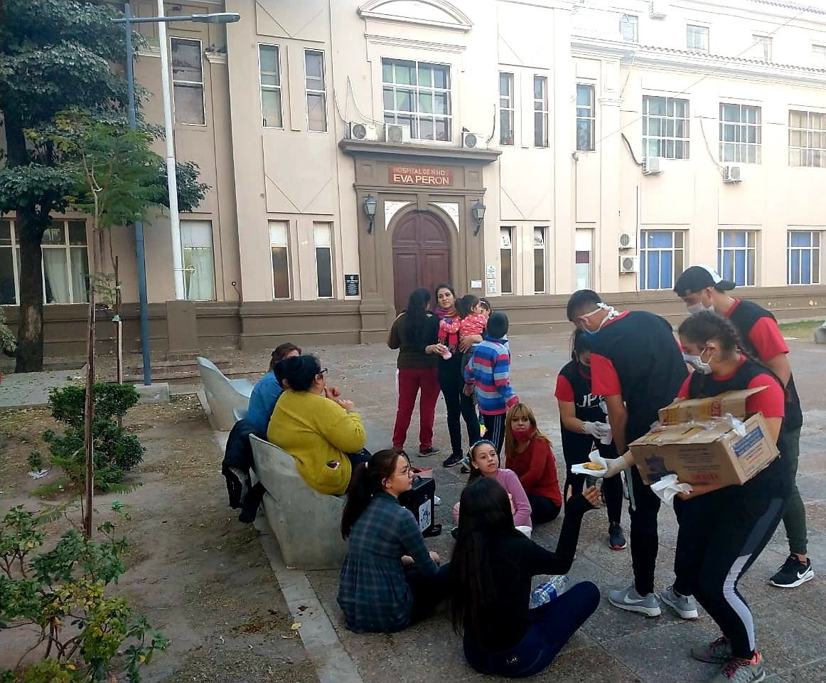 Este sábado 20 de junio, mujeres y jóvenes del Movimiento prepararon chocolate caliente, pastelitos y donas que distribuyeron por distintos puntos, tales como comisarías y centros de salud de Valle Viejo, Fray Mamerto Esquiu y Capital.