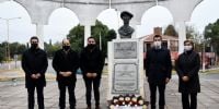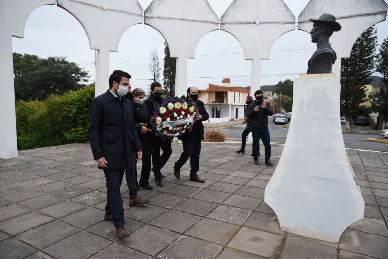Las autoridades acercaron una ofrenda floral al pie del busto del ilustre coronel, ascendido a general post mortem, en reconocimiento a su valiente lucha por la unidad nacional.
