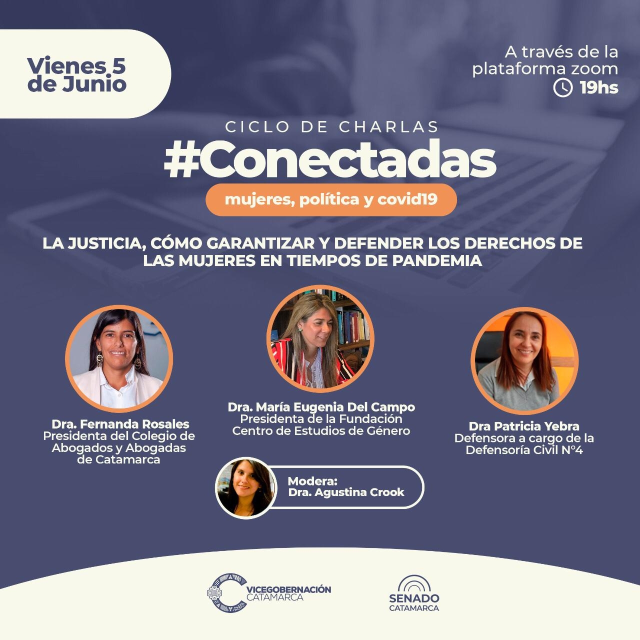 Estas charlas son organizadas desde el equipo de Vicegobernacion de la provincia con el objeto de generar un espacio de intercambio y escucha con mujeres de Catamarca. Esta nueva entrega será para conversar sobre la justicia y cómo garantizar y defender los derechos de las mujeres en tiempos de pandemia.
