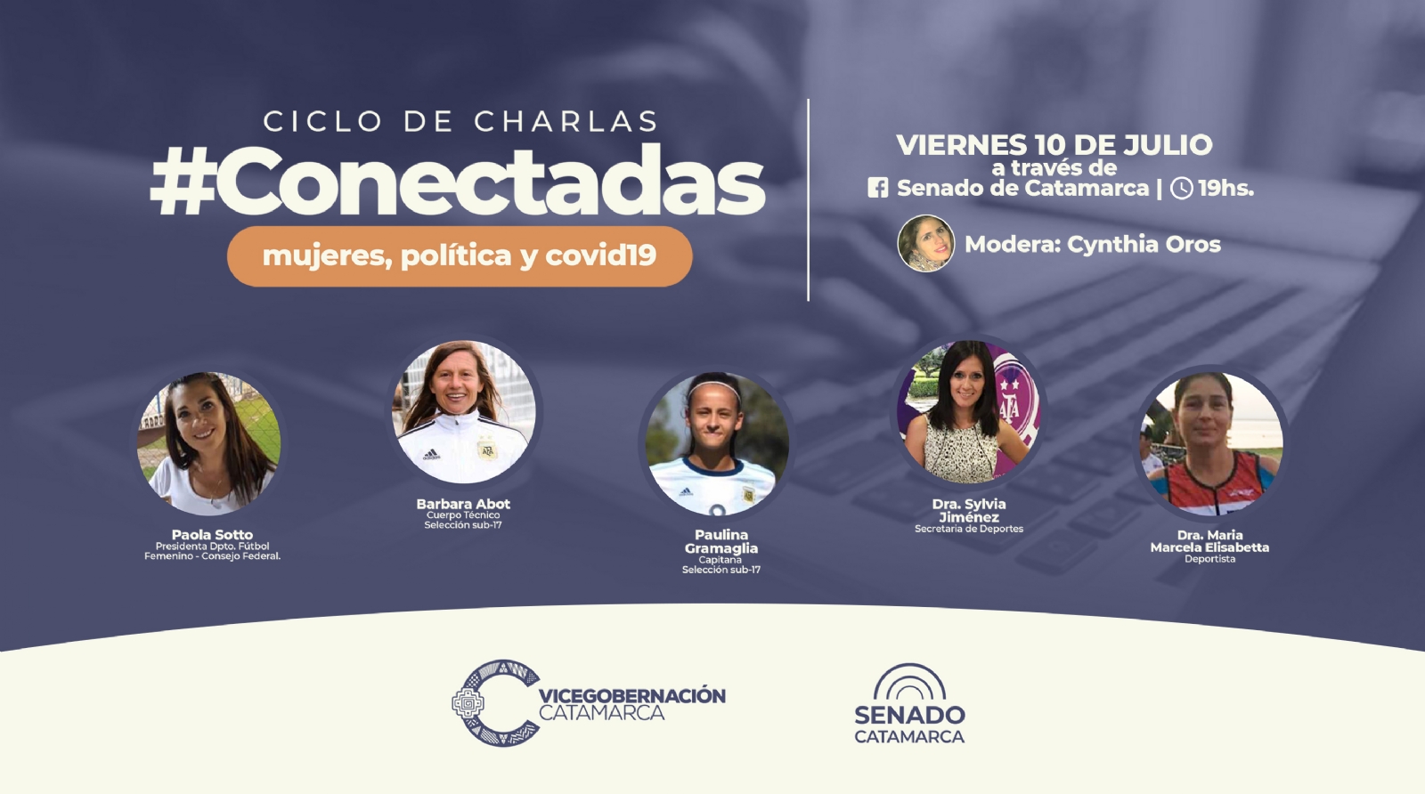Bajo la moderación de Cyntiha Oros, en esta edición del ciclo; Paola Soto, Presidenta del Dpto. Fútbol Femenino del Consejo Federal; Barbara Abot, del Cuerpo Técnico de la Selección Argentina Sub-17; Paulina Gramaglia, Capitana de la Selección Argentina Sub-17; Dra. Sylvia Jiménez, Secretaría de Deportes; y la Dra. María Marcela Elizabetta, Deportista, intercambiarán sus ideas y experiencias sobre el eje "Deporte: herramienta de inclusión e igualdad".