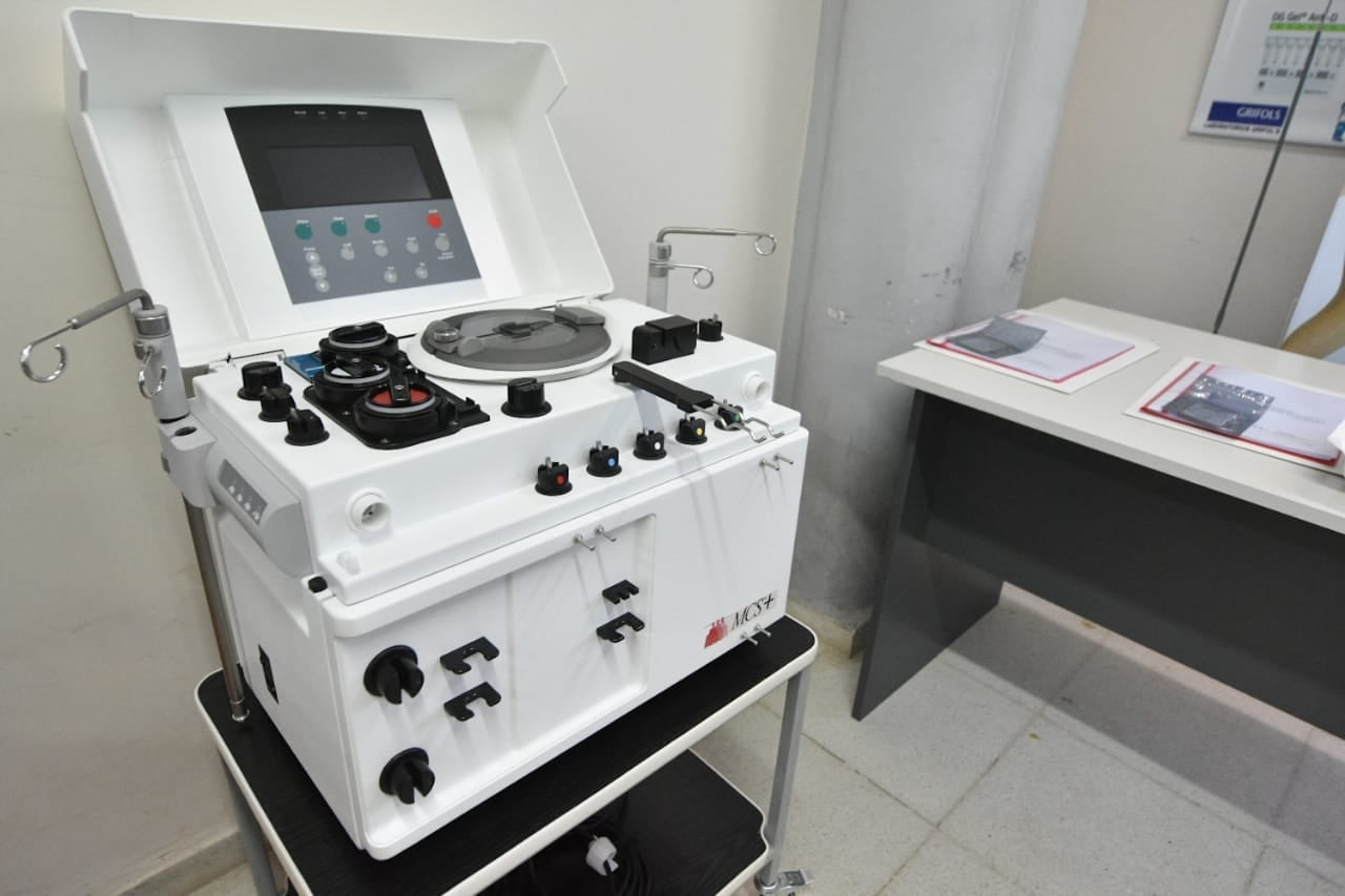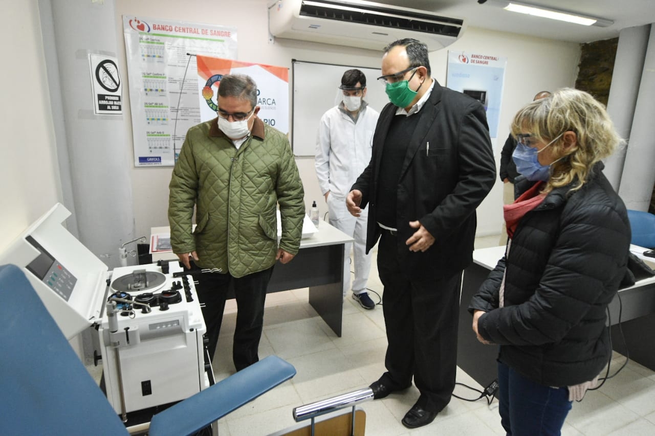 Raúl estuvo acompañado de la ministra de Salud, Claudia Palladino que, junto a los directores del Banco de Sangre, Dr. Rodolfo Bepre y del Laboratorio Central, Verónica Campi, mostraron al Jefe de Estado las instalaciones y el equipo de aféresis transfusional automatizado que permite la extracción de plasma a personas recuperadas de coronavirus, entre otras funciones.