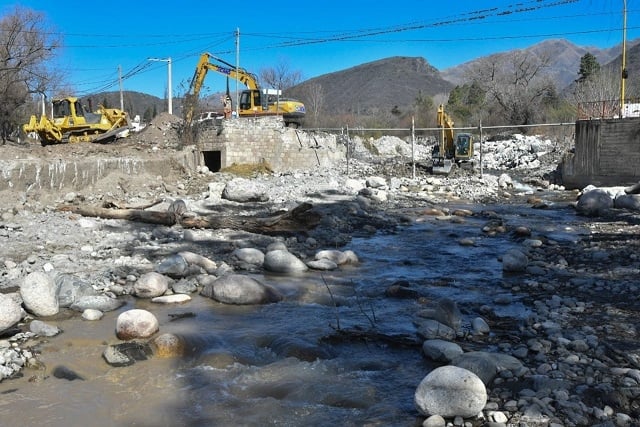 El gobernador Jalil y el ministro de Infraestructura y Obras Civiles, Eduardo Niederle, supervisó el inicio de la obra de construcción del nuevo puente que se construye sobre el río Ambato, en la localidad de El Rodeo.