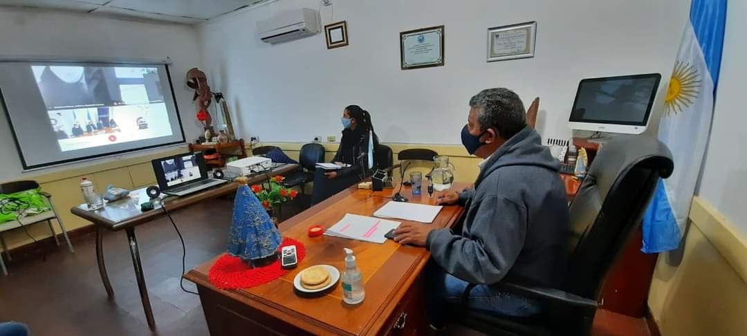 Participaron de la videoconferencia, el intendente José Antonio Gómez y el ministro de Gobierno, Justicia y Desarrollo Humano, Jorge Moreno. De esta manera, el Centro de Innovación pone a disposición del municipio una serie de cursos de capacitación para los empleados municipales con certificación.