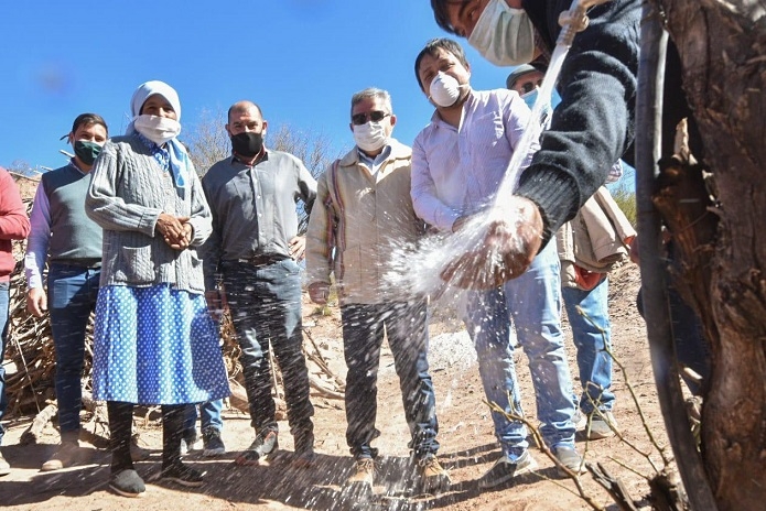 En El Durazno, entregaron elementos de prevención, frazadas y elementos de primera necesidad a los vecinos, para luego dejar habilitada la obra de agua que permite a los vecinos contar con su primera boca de agua potable. Previamente, se realizó una conmemoración breve en la escuela 133 de El Durazno por el aniversario de Tinogasta junto al equipo docente, donde además se exhibió el equipamiento de paneles solares dispuesto por el ministerio de Ciencia para reforzar el sistema de iluminación del establecimiento.