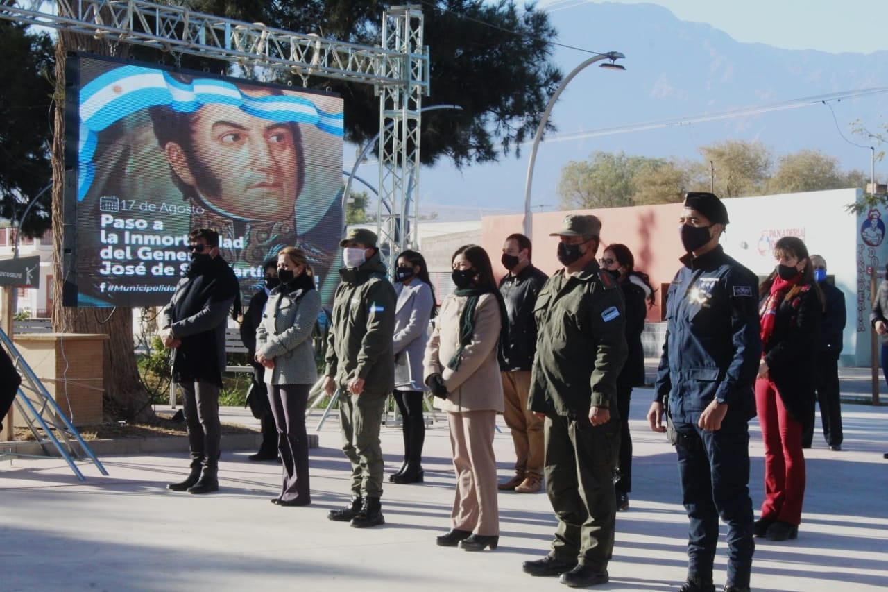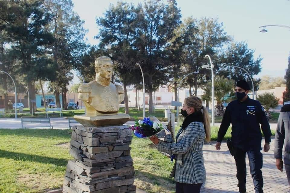En su discurso, la Dra. Romina Carrizo, directora General de Gobierno, señaló que el General San Martín “fue hombre de ley, de fortaleza, de inmenso espíritu por la libertad, en San Martin tenemos una gloria mayor que la de haberse medido con la montaña o el mar o la de haber vencido las armas españolas, esa es la virtud excepcional de un guerrero de haber sabido vencerse a sí mismo, renunciando a los ascensos, honores y los premios del triunfo".