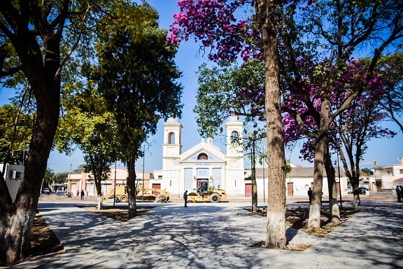 Por estos días, se intensifican los trabajos en el adoquinado sobre la calle Eusebio Ruzo, donde está emplazada la Iglesia San Isidro Labrador, en el marco de la obra de embellecimiento del paseo público.