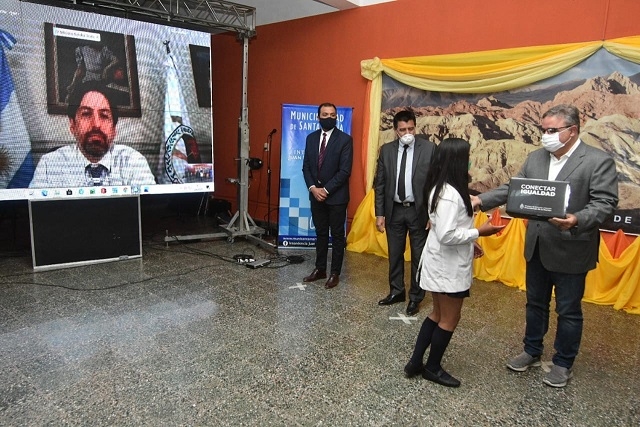 El gobernador Raúl Jalil, acompañado por caciques de comunidades originarias y los intendentes de Santa María y San José, recorrió localidades del interior departamental, entregó netbooks a estudiantes en videoconferencia con el ministro de Educación de la Nación, Nicolás Trotta, e inauguró el nuevo sistema de iluminación LED de la ciudad de Santa María.