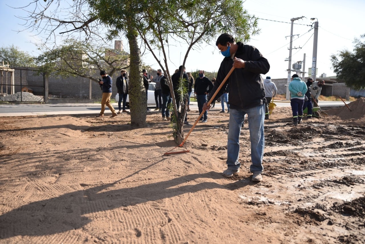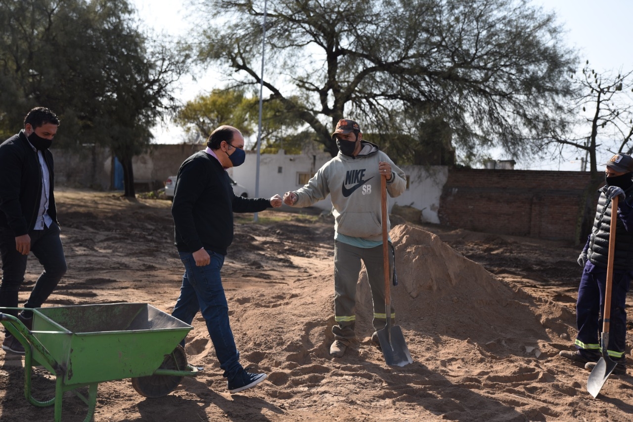 Continuando con el plan de recuperación de espacios verdes, el intendente Gustavo Saadi visitó la obra de la plaza en el barrio La Cruz Negra, trabajo ejecutado de manera conjunta entre las secretarías de Urbanismo y de Medio Ambiente, a cargo de Gabriela Molina.