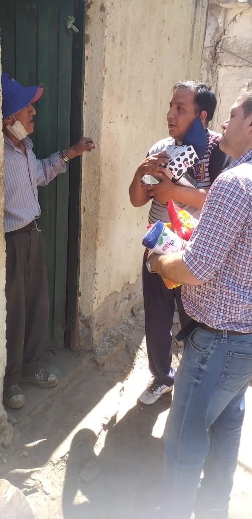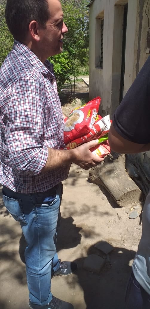 El presidente del Movimiento Social Federal Belgrano, Arturo Santillán, junto a integrantes del grupo, entregó este fin de semana alimentos a los vecinos que más lo necesitan.