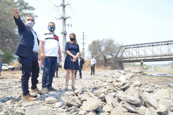 Sobre la obra que se realiza en la costanera del Río del Valle, a la altura de Tres Puentes, el Ministro Niederle indicó que “iniciamos la obra de la costanera, ahora estamos haciendo unos trabajos previos para proteger los márgenes, el objetivo es terminar los tramos que van desde Ruta 1 hasta el camino de la Virgen”.