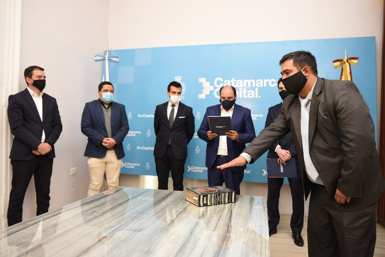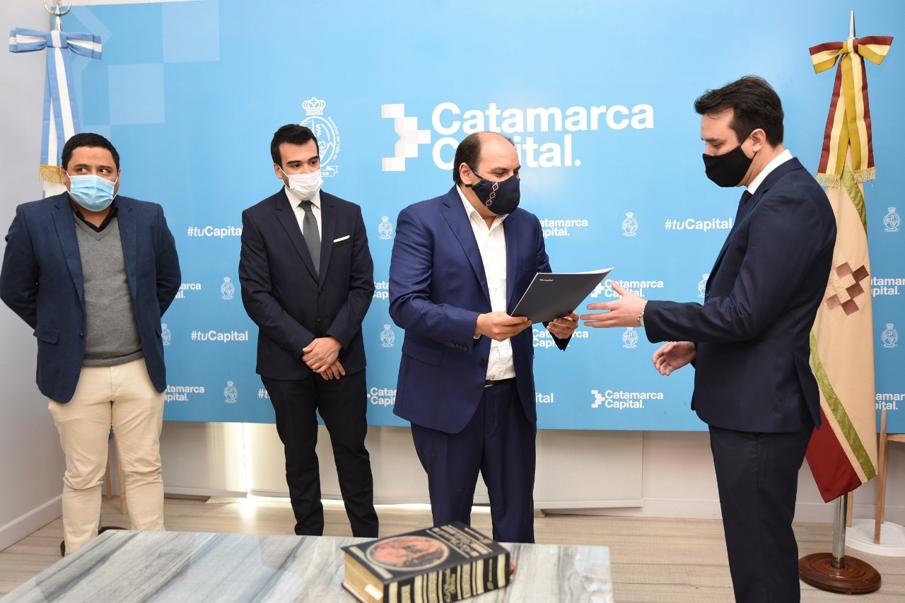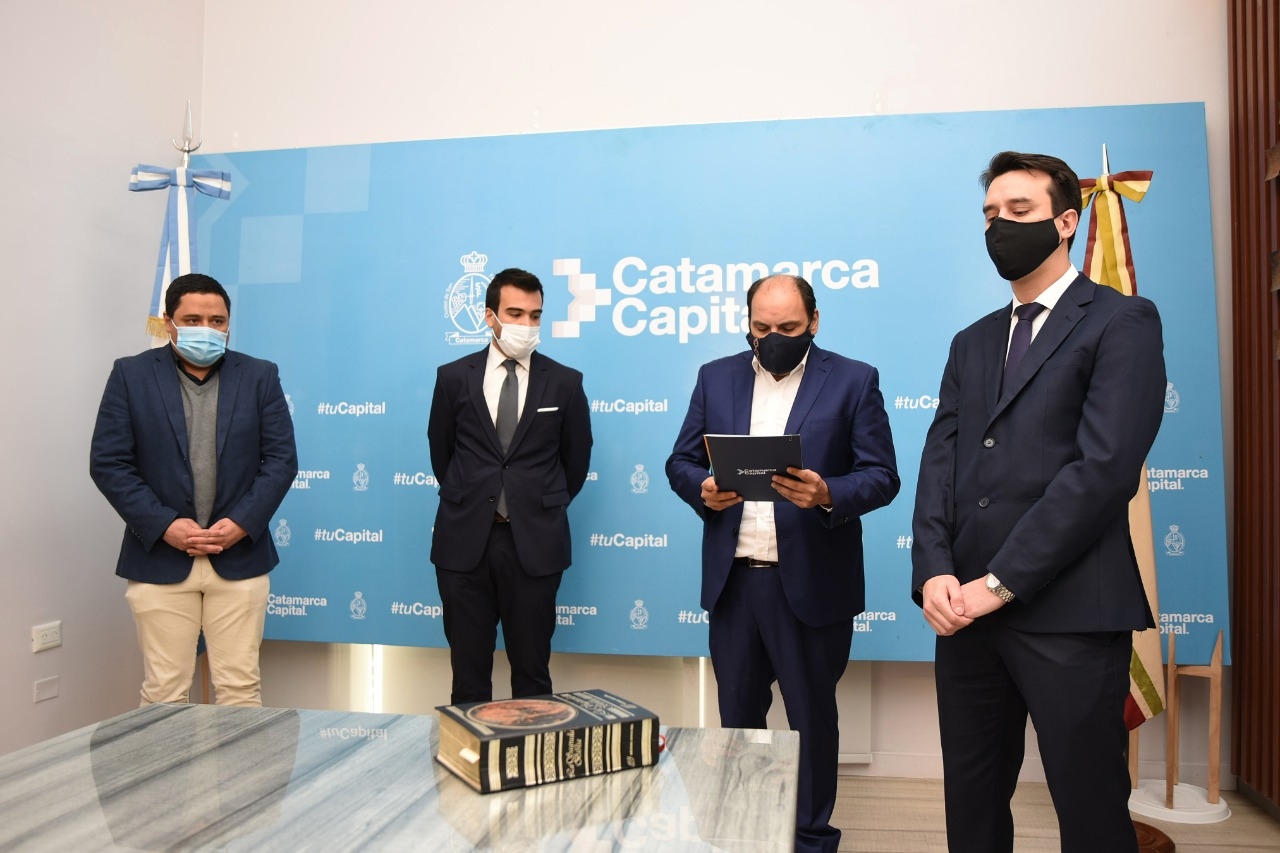Con la presencia del secretario de Gabinete y Modernización, Mariano Rosales y el presidente del Concejo Deliberante, Daniel Zelaya; la breve ceremonia se realizó en el despacho del intendente y sin público, en atención a las restricciones impuestas por la emergencia sanitaria.