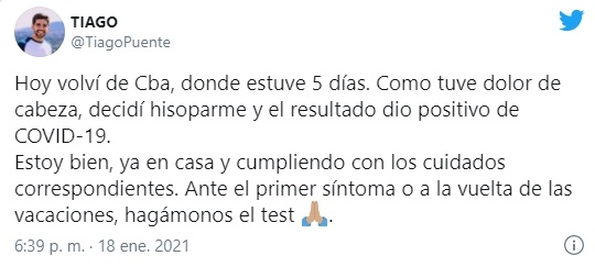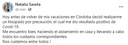 El diputado Thiago Puente eligió la red social del pajarito para informar su caso; mientras que Natalia Saseta, lo hizo a través de Facebook.