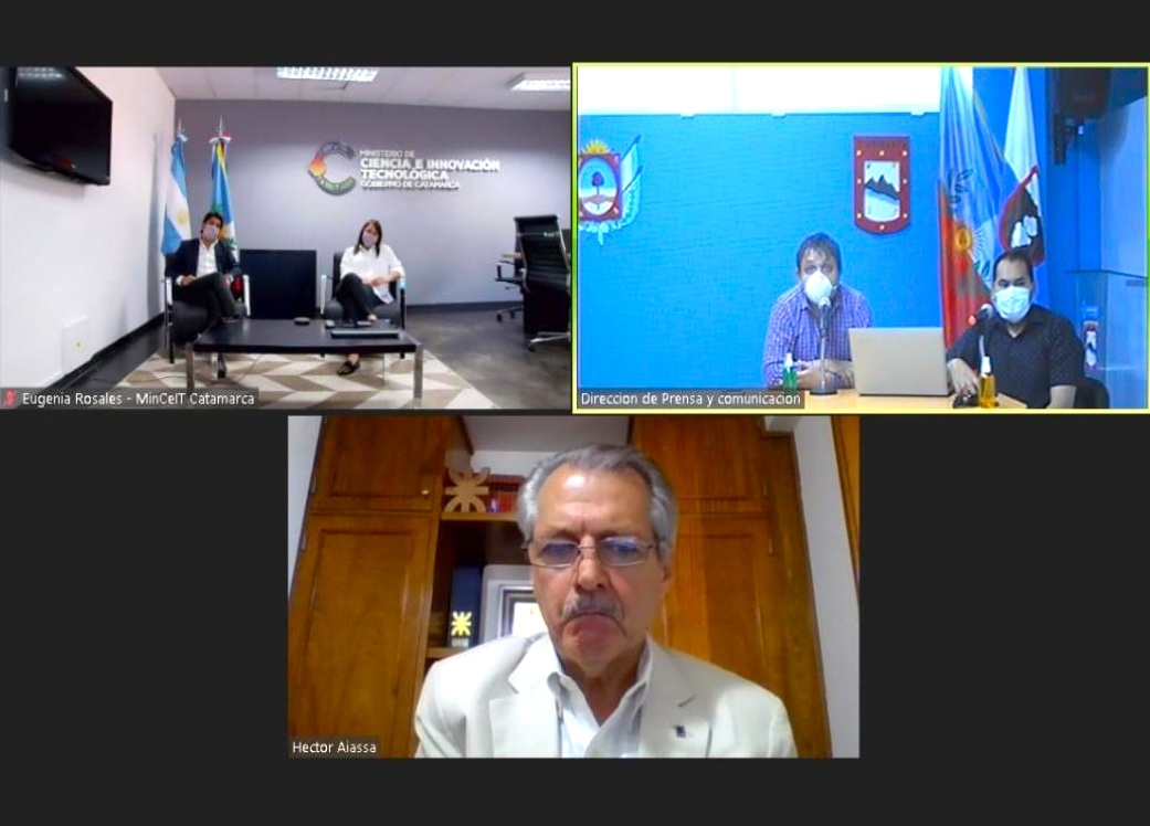 El intendente Sebastián Nóblega junto al secretario de Planificación y Desarrollo, Prof. Abel Martínez, mantuvieron una reunión virtual mediante la plataforma Zoom, con la Ministra de Ciencia e Innovación Tecnológica de la provincia, Eugenia Rosales Matienzo y el Rector de la Universidad Tecnológica Nacional, Ing. Héctor Aiassa, con el propósito de iniciar el diálogo para sumar una sede de la UTN en la ciudad de Tinogasta.